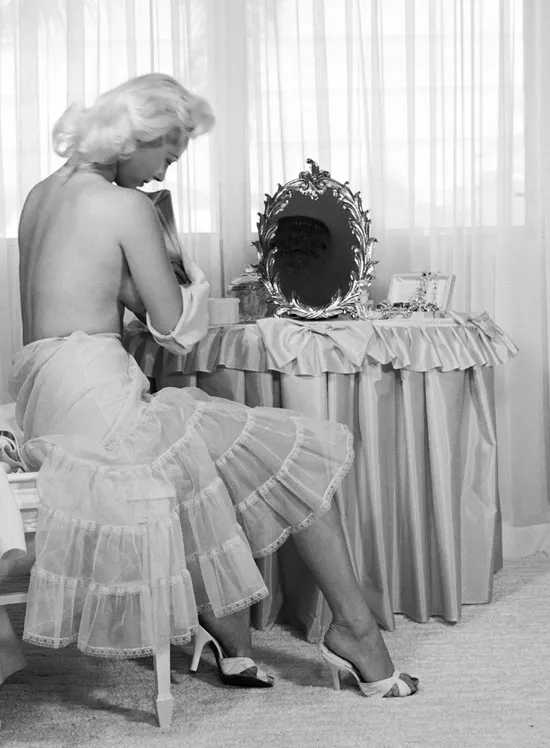 A visit with a Playmate too shy to become a star. It may be difficult to believe, but the girl pictured so personally here is extremely shy. These intimate photographs of Miss December 1956 Lisa Winters preparing for bath and bed were taken by a woman. Lisa will not pose for a male photographer and before she was discovered waiting for a bus on a downtown Miami street corner, Lisa had never posed for anyone. Bunny Yeager submitted her picture to Playboy and it would be quite accurate to state that this magazine's rather jaded editors flipped. So did our readers.