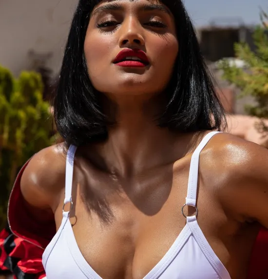 The warm Moroccan sun kisses your Playboy Muse of the Year, Angel Constance beautifully in this brand new January pictorial. On the location of a rooftop in Marrakesh, Angel takes in all the vitamin D she can while the photographer, Cassandra Keyes, snaps away at her camera. "The streets are beautiful and vibrant. There's so much going on - so much color, so much life," says Angel of Marrakesh. "I've really been enjoying the hot sun on me, and getting away from cold Canada!" Looking lovely in a white bikini, sneakers, and a red jacket, Angel tells us how sexy she feels in clothes like these. "My favorite thing to wear? I would love to be naked all the time," laughs Angel. "But if I had to choose, I feel super sexy in casual clothes - sneakers, shorts, a crop top. I feel like that is my go-to cute outfit." Undressing with grace, Angel takes in the view of her stunning backdrop. When it comes to dating, Angel enjoys the company of someone open-minded. "A guy with a good sense of humor. Someone easy-going and open to exploring," she says of her type. "That keeps my attention more than even getting it." Get to know more about Angel, every month, right here on Playboy Plus!