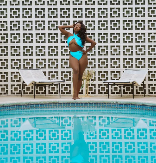 Take in the California sunshine with Aziza in this second gallery and video from the photographer, Madeline Northway. On location at a pool in Hollywood, Aziza poses effortlessly. "Some words I live by? Take moments to embrace and acknowledge all the pleasures, personal growths, and luxuries in your life," she says. "Life is unpredictable, and we're given one- don't wait for what you want to happen for yourself." For Aziza, this is one of those moments. "It feels wonderful to be a part of the Playboy family. For me, the Playboy brand means to embrace yourself," she says. "For every dream I accomplish, I feel proud!" When she's not working on tackling her next career goal, Aziza loves to curl up with her favorite TV show or explore a new city. "I love watching The Real Housewives. It gets my mind off daily stressors, and I can tune out and watch their lives," she laughs, "I also [love] to go out, whether it is to eat, explore new places, or a night on the town." See more from Aziza, right here on Playboy Plus!