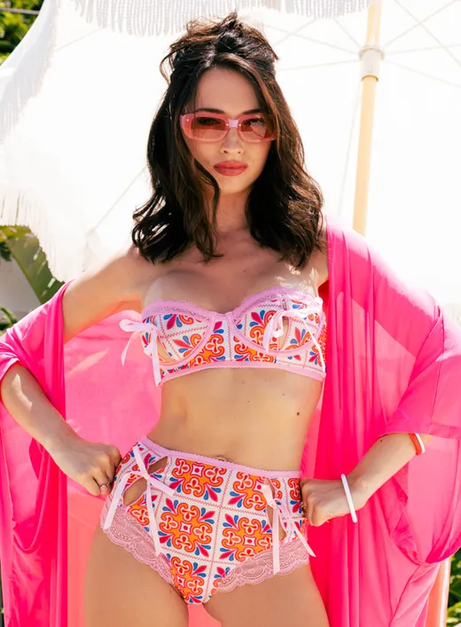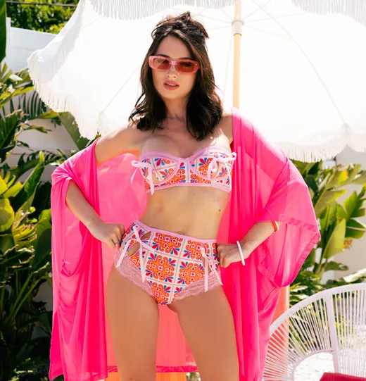 Brooke Tilli's second shoot with Cassandra Keyes is a dazzling display of color, confidence, and charisma. Dressed in a vibrant retro-inspired lingerie set with lace details and wrapped in a flowing pink cover-up, she radiates playful glamour beneath the sun. Her bold shades and sultry stare add just the right touch of mystery, while her pose celebrates both elegance and edge. For Brooke, modeling is more than a job-it's her art. "I see it as a form of self-expression, celebrating my body in a way that feels fun and beautiful. I know I'll look back on these photos one day and love them even more," she shares. With creativity at the heart of her work, Brooke embraces each shoot as a chance to connect and create-and this radiant poolside moment proves just how unforgettable that can be.