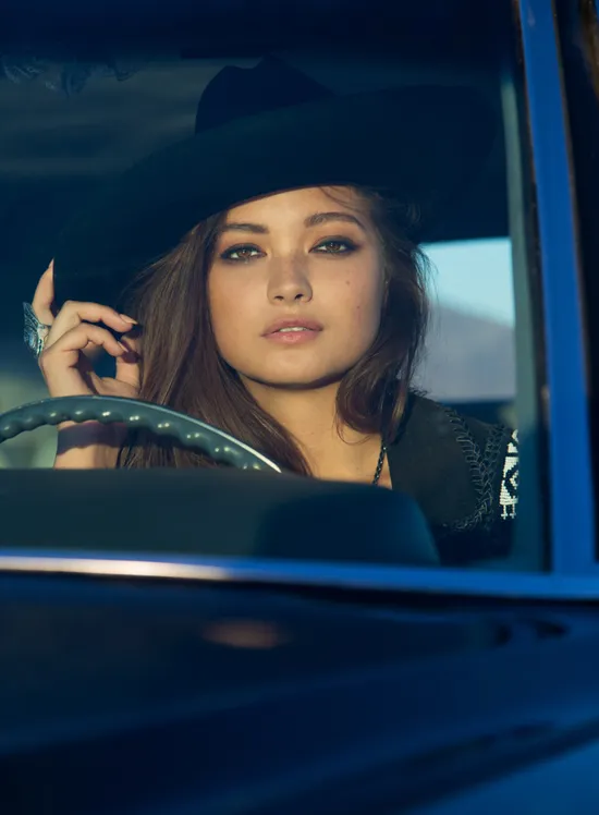 Playmate Chelsie Aryn is a real sharp shooter in this set from photographer Sasha Eisenman. Dressed head-to-toe in black leather, boots and spurs, Chelsie cuts a striking figure-and if you ask us, her natural breasts and shapely legs don't hurt a bit. "I love my boobs," says Chelsie, squeezing them for emphasis. "At photoshoots, other people grab them and tell me they feel so real. I'm like, 'Yeah, that's 'cause it's all fat-no silicone!'" Our charming Miss March has many natural talents besides her breasts-she loves to design her own one-of-a-kind clothes, and she's a die-hard New York Jets fan. "Oh, I'm very crafty," says Chelsie. "I rip up my old clothes and make them into new ones, adding rips or patches or pearls." Thankfully, Chelsie's as comfortable in her own skin as she is in clothes. "I wasn't nervous at all," she says. "We shot these photos in the middle of nowhere, out in Dale Dry Lake. There was nobody around, just me and my Cadillac!" Get back in the black with Playmate Chelsie Aryn, right here on Playboy Plus.