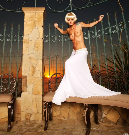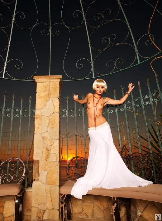 The saying goes blondes have more fun andCybergirl Veronica LaVery decided to test out this theory by wearing a platinum blonde bob during her shoot with photographer Barry Fontenot. Our voluptuous Cybergirl of the Month for June 2011 seduces from the Playboy cage to the outdoor steps as she poses wearing nothing but jewelry. Veronica couldn't decide if blondes or brunettes have more fun, but we know that our Playboy fans are sure to enjoy themselves most when they see her latest photoshoot.