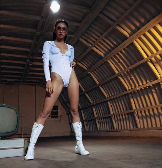 Making her Playboy Muse debut, Deisy Leon commands attention in this sexy pictorial from the photographer, Cassandra Keyes. Dressed in a white bodysuit, lace-up boots, and futuristic shades, Deisy looks cool and confident on the set of a bunker as she tells us about herself. "When I discovered Playboy, I knew I wanted to be a part of it," she says. "The brand [represents] women empowerment to me. I feel like I am a part of a group of women who love being themselves and aren't afraid to be." When it comes to her own empowerment, Deisy is doing exactly what makes her feel most free. "What does female empowerment look like to me? Women [who are] expressing themselves, however, and whenever they want. I feel [it] when I'm nude - we were born naked; it only makes sense that it feels right!" Undressing for the cameras, Deisy exudes a boldness you will want to see more of. Make sure to check backs soon, right here on Playboy Plus.