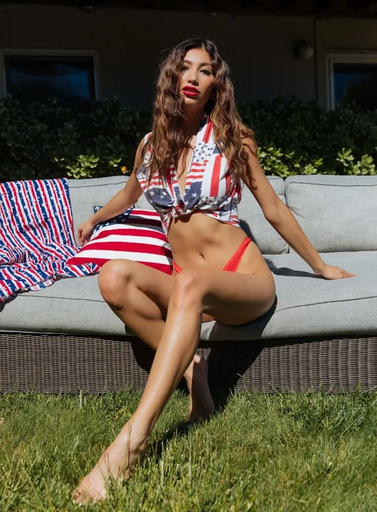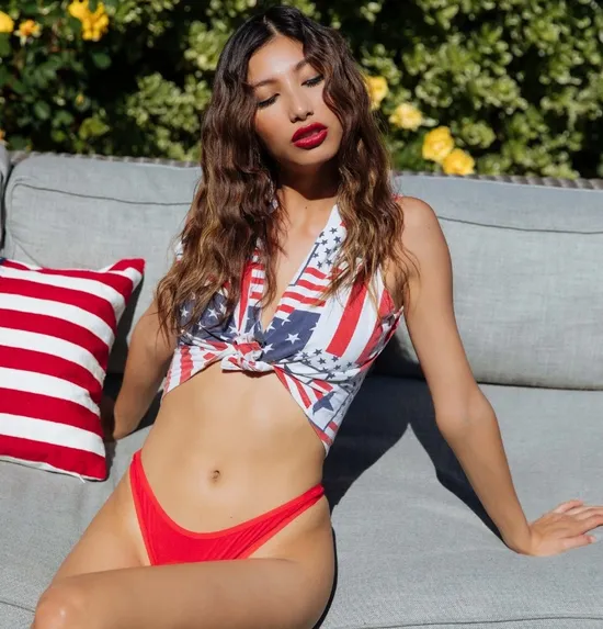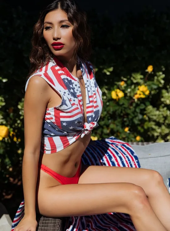 Celebrate the Fourth of July with Dominique Lobito in this festive pictorial from the photographer Sophie Sinclair. "I am big-hearted, loud, and silly," says Dominique of herself as the camera begins to snap. "Most of all, I'm respectful and kind." Wearing red, white, and blue, Dominique lets her personality shine in her sexy yet playful poses. "My personal experience with Playboy thus far? Fantastic! I loved working with an all-female staff," she shares. "Ladies need to stick together. Women should constantly be motivating each other - that is when I feel most empowered." For Dominique, this gig is extra sweet. "I always fantasized about being a Playboy model," she shares. "I have finally got to live through one of my lifetime goals!" When it comes to dating, she needs someone who can level with her. "Biggest turn on? Answering my sarcasm with sarcasm," she laughs. "I need someone who can match my energy and isn't afraid to be silly with me, but also knows when it's not the appropriate time to be silly. The most important quality is [being] honest. They [should] know what's going on in the world and have common sense." Continue getting to know Dominique right here on Playboy Plus.