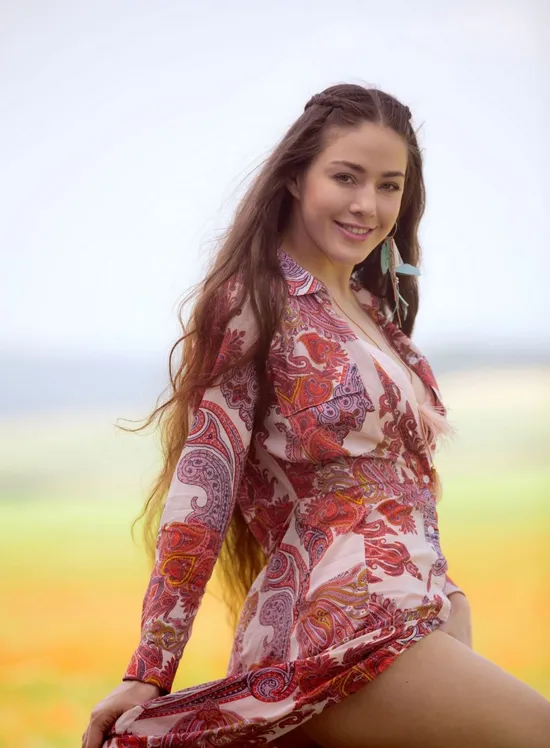 Let the gorgeous International model, Joy Draiki sweep you off your feet in this delightful pictorial from the photographer, David Merenyi. In a large field of wildflowers, Joy stands out just beautifully in a long dress and pink lingerie. With the wind blowing in her long brown hair and her sparkling eyes piercing the camera, you won't be able to look away as she slowly and seductively begins to remove pieces of her outfit, one by one. "My passion is being creative in any way possible," gushes Joy. Proud to be posing for Playboy Plus, Joy was thrilled when she got asked to pose for us. "I love the way Playboy works," she says. "Wanting to portray genuine, confident and joyful women just having a good time!" Doing just that, Joy is breathtaking as she enjoys the beautiful landscape before her. Are you loving this second feature from the charming, Joy Draiki? Make sure to let her know in the comments below, right here on Playboy Plus!
