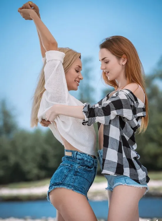 International models, Zhenya and Kate get lost in each other's eyes in their second Playboy Girlfriends feature together. Dressed in casual, cute clothing on location by a tranquil river, the two models look lovely posing for the photographer, David Merenyi. In no time, the gorgeous European models begin to undress one another slowly. Removing their white lingerie, these gorgeous ladies will have you head over heels instantaneously. "I feel sexiest in short shorts or a loose dress," says the beautiful Zhenya, now totally nude. As for Kate, she feels most confident and beautiful dressed down. "I feel sexiest in pajamas," she says with a little laugh. When they're not modeling, you can usually find these two beautiful women traveling, hanging out with friends, or staying active. "In my spare time I love to do sports," says Zhenya, while Kate keeps fit by dancing. Learn more about these two through their other Playboy Girlfriends set with the lovely, Nirmala, right here on Playboy Plus for VIP!