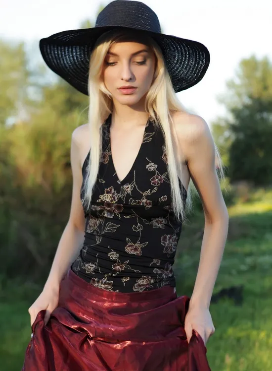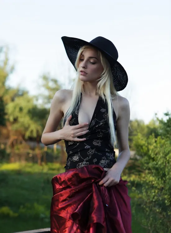 Newcomer, Kira is all dressed up for a night out. Looking beautiful in a long red skirt, black top, and hat, you'll be charmed by Kira in just moments. Watch in awe as she undresses seductively for all her new Playboy Plus fans. When she's not posing in front of cameras, you can usually find this Ukrainian beauty traveling for leisure, staying fit, or browsing an art museum. "I love travel and the arts," she tells us. "I also [like] swimming and dancing!" Learn more about the gorgeous, Kira, only on Playboy Plus!