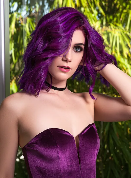 Amateur Lo makes a stunning first impression with this shockingly sexy pictorial from photographer Michael Valentino. A self-proclaimed gamer with purple-colored hair, Lo promises to inject some magic into the world of Playboy Plus with her nerdy knowledge, purple punch and wide, blue-eyed look of seduction. "I'm actually a hobbit from The Shire in Middle Earth," she jokes. "Now I'm in one of the best cities in the United States, which is awesome-Los Angeles! I have so many personal interests, but first and foremost, it's really gaming. I play Dungeons and Dragons with my friends and my number one sexual fantasy definitely involves any and every superhero ever in like any and every way. That's my number one fantasy for sure." Supplementing her natural beauty with a corset and thong in her favorite color, Lo takes us on a journey to seduction and beyond. She has the look, the strategy and the courage to protect our fortress of sexual expression-she's going to use her sexy, magical powers for the greater good, only on Playboy Plus.