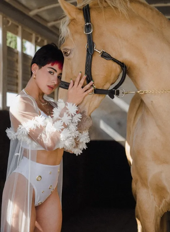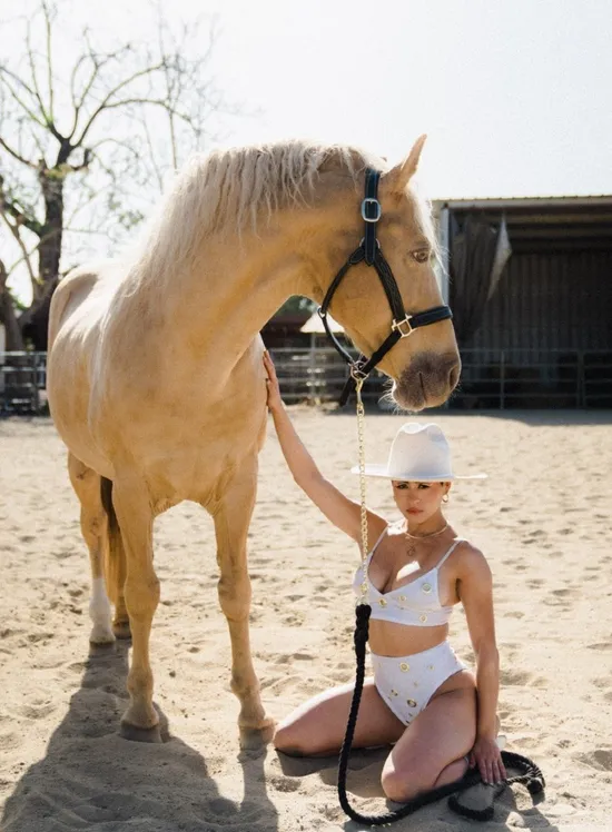 "I feel like it is such a gift to be alive, and I want to enjoy that gift to the fullest," says Mia Valentine on set before hopping on horseback as the photographer, Madeline Northway, captures her. On a ranch just outside of Los Angeles, California, Mia spends the afternoon basking in an alternate reality. "My passion? Travel" gushes Mia, who has done quite a bit of it. "When I was growing up in Guatemala, I used to lay on my back looking up at night, watching all the planes go by, and I would say to myself, 'one day I'm going to be in one of those planes traveling the world.' Now I'm doing it!" Mia lets us in on what she looks for when dating, too. "I'm not impressed with cocky or flashy men," she says bluntly. "I look for a partner with a unique sense of style and world outlook. I know this is cliché, but a sense of humor attracts me more than any physical trait. Keep me laughing, and my panties will be dropping," she adds with a laugh. As for the first outing, Mia is all about something simple. "I'm an easy date - tacos and great conversation," she says. Make sure to check out all of Mia Valentine's pictorials right here on Playboy Plus!