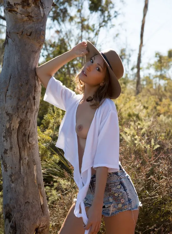 Looking effortlessly gorgeous as usual is your Playboy Muse of the Month, Miluniel Louis. Getting ready for a little adventure on location in Perth, Australia, the lovely Miluniel is dressed in a white top, shorts, a hat, and boots for a sensual hike with all of her fans. Photographer, Cassandra Keyes captures Miluniel's natural beauty just perfectly as this sweet model from Belgium begins to undress to reveal a flawless figure. "My best quality is that I am kind and try to be openminded," says Miluniel. "I've always been curious about everything, willing to discover the world and make new experiences!" Doing just that with you, Miluniel is more than thrilled to be right where she is in her modeling career. "I've always wanted to be a part of Playboy, and I've dreamed about becoming a Playmate," she says. "So, when Cassandra Keyes contacted me for a Playboy photo shoot, I was really happy!" Currently, this lovely brunette is single, but she's definitely looking for that special someone. "Kindness, open-mindedness, and intelligence are essential to me," she says thoughtfully, "But I admit that I usually notice a guy first if he is really charming," she adds. Indulge in all of Miluniel's charm, elegance, and beauty for the month and always, right here, only on Playboy Plus!