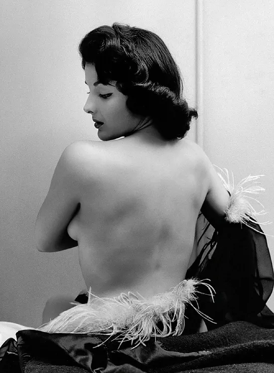 Anne's Playmate photo is one of few shots that doesn't offer direct eye contact with the reader. Photographer Hal Adams actually shot it both ways, but Hefner picked the more unusual--and provocative--pose. The alternate, in which Anne looks at the camera but there is no male presence suggesting an intimate encounter about to occur, appears in the January 1956 feature "The First Two Dozen Playmates."