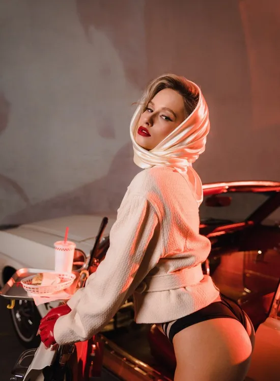 Head to the movies with Polina in this brand new pictorial from the photographer, Madeline Northway. On the set of a private garage screening, Polina poses with a beautiful vintage car as the camera snaps away. "I'm super artistic. My passion is creating art," says Polina. "It's so fun to work with like-minded people [and] see the whole creative process come together." For Polina, posing for Playboy was just that. "I love that the whole team for my photoshoot was women. It was such a comfortable and empowering experience," she says. "Female empowerment means truly supporting one another. I'm most proud of how far I've come in my journey and how many goals I've been able to reach, especially working with Playboy." When it comes to dating, a chill night at the movies or a nice dinner is something Polina is into. "I'm a sucker for a good meal and a nice view," she tells us. "But honestly, what would make it a perfect date is just having a good connection with interesting conversation - not just small talk." Get to know Polina better, right here on Playboy Plus!