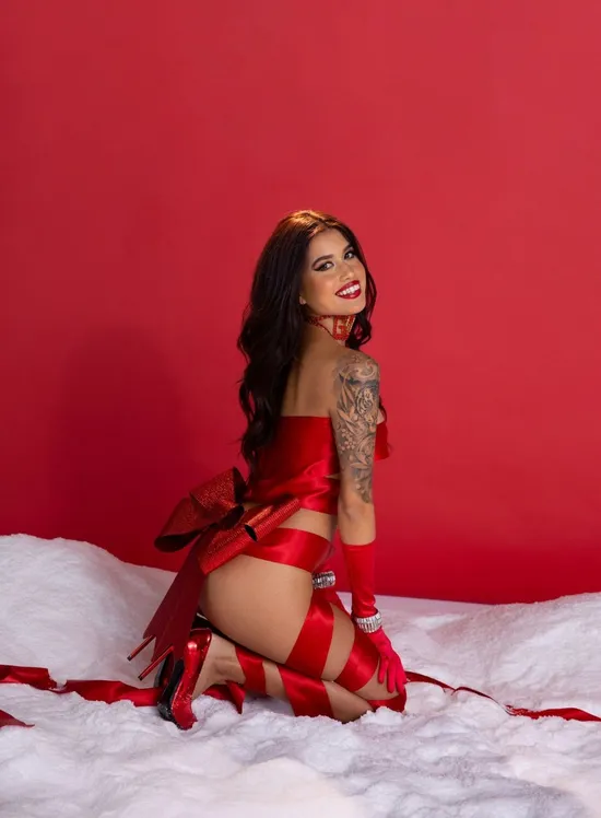Newcomer Roxy Ferrari gets in the holiday spirit in this festive debut by the photographer, Maddie Córdoba. Dressed in nothing but ribbon, Roxy has a blast on set as we learn more about her. "I'm a very positive person," she says of her personality. "I love making others feel good about themselves and making people smile. I'm also pretty silly." As a working DJ, you can usually find Roxy at a venue spinning records. "I've had a passion for music and fashion since I was little," she says. "Something I'm most proud of is making a living doing what I love." We met Roxy through her photographer, Maddie. "My experience so far? It's been so exciting! The day of the shoot was amazing. Everyone on set was professional and creative," she shares. "I also love that the team was mostly female. Everyone made me feel super comfortable!" For Roxy, posing nude is a freeing feeling. "I think it's beautiful. Posing nude is empowering," she shares. "To take control of your own sexuality can be liberating." Stay tuned for more from Roxy Ferrari this holiday season, right here on Playboy Plus!