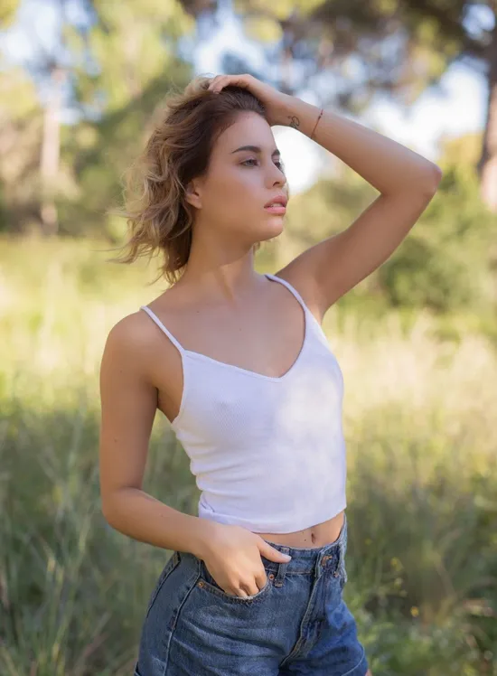 Take it outside with the stunning Venezuelan model, Toni Maria in this gorgeous third pictorial from the photographer, Henrik Pfeifer. Dressed in a white tank and jean shorts, Toni looks casual yet incredibly dreamy as she enjoys a refreshing walk outside. With the sun shining on her lovely, glowing skin, Toni couldn't feel more free and thrilled to be on set shooting. "In my spare time I connect with nature," she tells us. Totally in her element, Toni slowly but surely begins to show the camera her lovely, all natural figure, and you won't be able to take your eyes off her. "What I love most about my body are my eyes and my back," she tells us confidently. "I feel sexiest naked!" When it comes to dating, this beautiful model likes someone who is goal-oriented and knows how to have a good time. "The most important is a boy with purpose," she tells us of what specific things she looks for in a significant other. "My perfect first date would be good conversation, laughs, good food and water!" If you just can't get enough of the gorgeous Toni Maria, check out her other pictorials, right here on Playboy Plus!