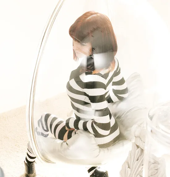 "Barbarella is our inspiration for this pictorial," says Heffner. "The room is all white and shag, and Lilex is curled in a hanging, clear plastic bubble chair that never stops in the right position, so I just let it keep turning and wait. As the front of the chair finally comes forward, I remind Lilex to keep her back arched. We miss this turn because she is laughing. Apparently, balancing in a spinning bubble with sexy eyes and good posture is a lot to keep track of while slipping her breasts out of a bra. Lilex is making a dream day even easier. She has a wonderful figure and, more important, she's great fun to shoot with. She's adventurous with a hit innocence that reminds me of a high school girlfriend."